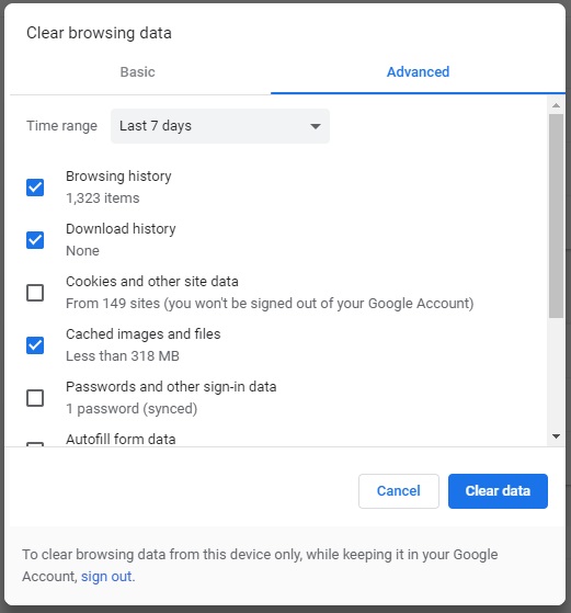 - Click on "Clear data" button.
