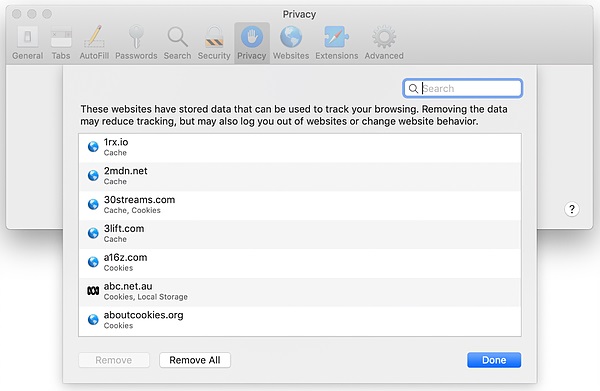 - Click on 'Manage web site data'.